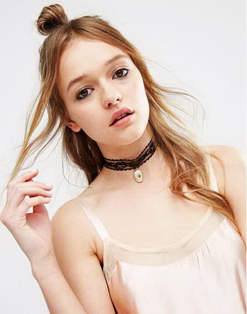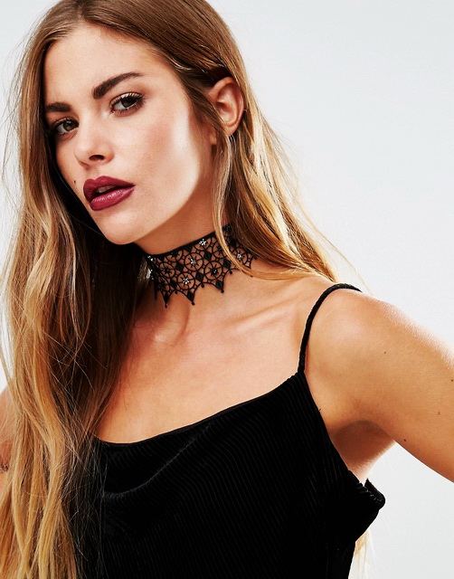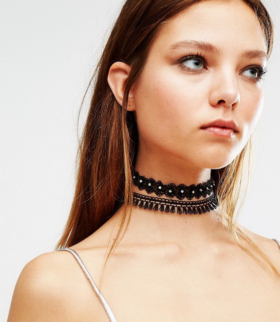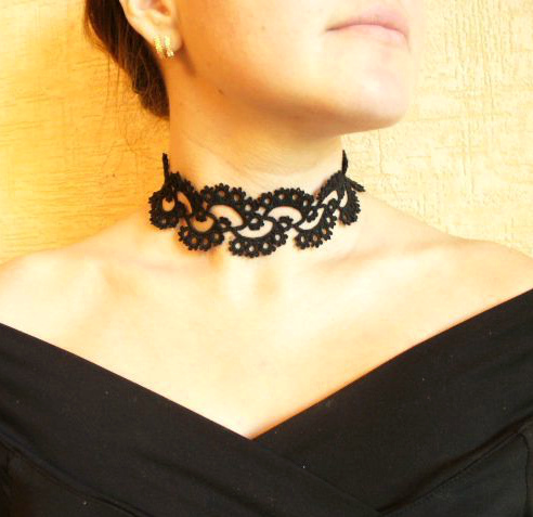 Choker is so simple in its design that it can be made with your own hands. It is enough to go to the nearest shop for needlework, purchase a small piece of lace, clasps, choose any stones or beads at will and create an original decoration. With such a choker any girl will look unique.