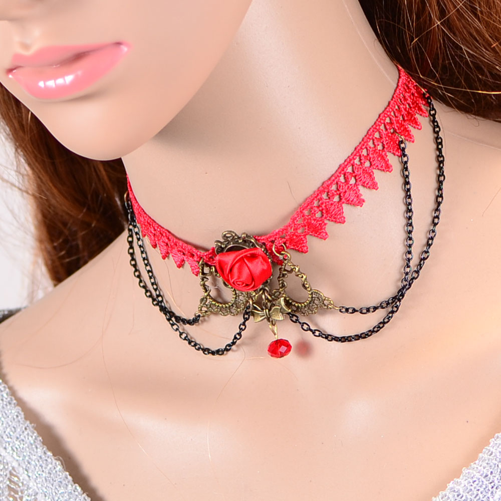 Undoubtedly, the most popular color for a lace choker is black. Openwork collar looks like a tattoo. This is a universal solution that fits any image. The black color for such a necklace is so popular that at the first mention the accessory appears in such a color version.