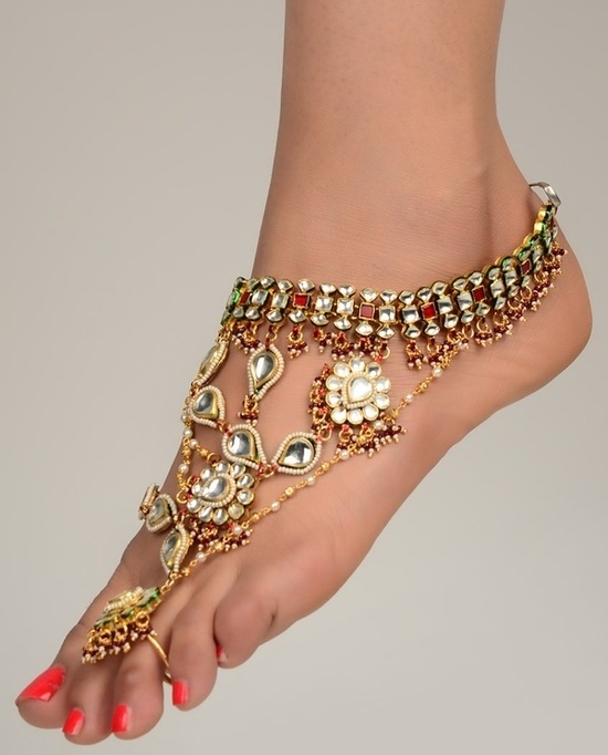 In addition to the two standard types, there are several interesting models that are worth highlighting. Payal is a chain that connects with a toe. This is one of the most famous Indian ornaments, which is perfect for a barefoot walk on the grass or sand. You can also recommend Payal to fashionable brides who would like to hold their wedding ceremony on a warm beach sand.