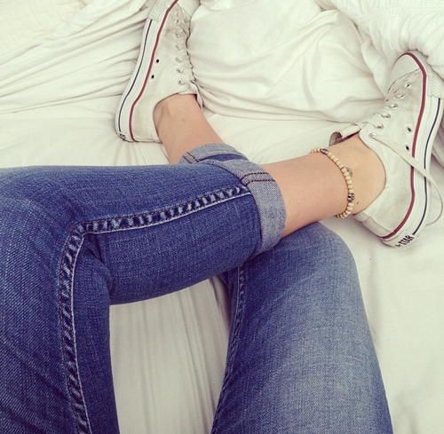 Silver chain on the ankle is an option that girls should think about. This model is beautifully combined with the urban style in clothing and is the very highlight that can transform the image. An anklet made of silver with rolled up jeans, voluminous shorts and a long skirt looks very tender. From shoes fit ballet shoes, sandals and sandals. So it's time to make an interesting bow and go for a long city walk.