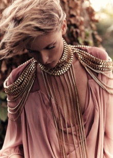 But when choosing this product, consider the fact that it will look harmoniously only on the girl who prefers light and gentle clothes. On the older women these chains will look ridiculous and even funny.