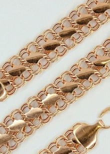 Chains of this type are made of diamond-shaped elements. Double diamond is used for neck jewelry, and triple diamond is used for bracelets. Gold and silver chains, made in the technique of rhombus, are very popular with men