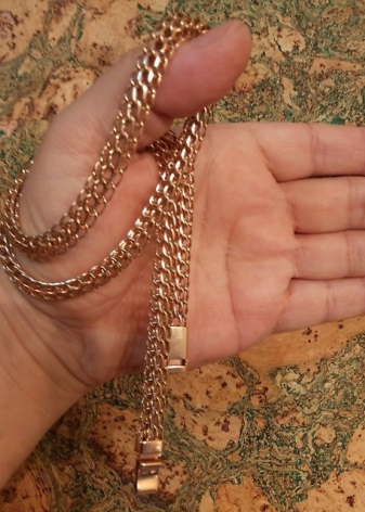 - Massive decoration with lots of links is easy to fake. Fake chains and bracelets are usually coated with gold, made of low-grade metal, sold without certificates for products. You can avoid meeting with scammers if you buy jewelry in branded stores and from professional jewelers with an impeccable reputation.