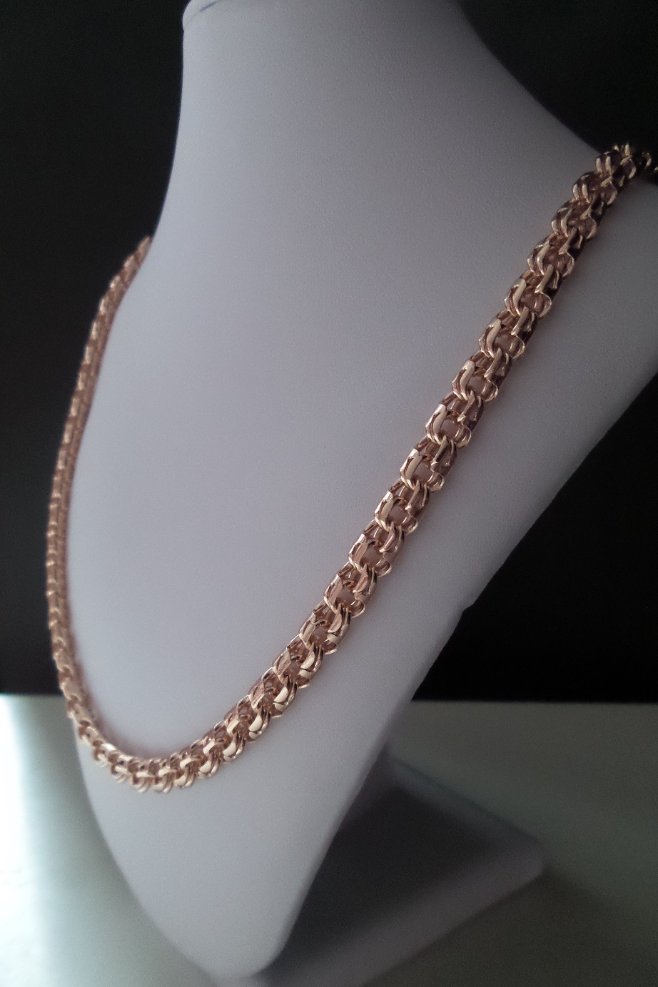 Original weaving is different from other types of its massiveness and versatility. Unique decorations are created using a special technique of connecting links. Due to this, the chain has such an extraordinary shape and has a special strength and durability.