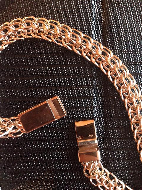 - Weaving-trickle - a technique in which one link of a round shape as it flows into another. Usually inexpensive and voluminous men's jewelry.