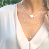 Different chains and length. There are very short models that do not descend below the clavicle, but there are products that reach the chest.