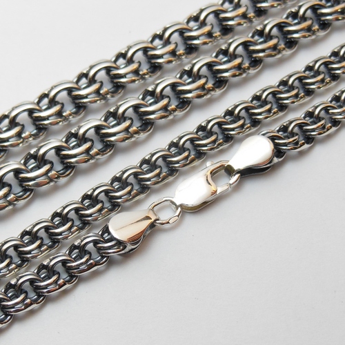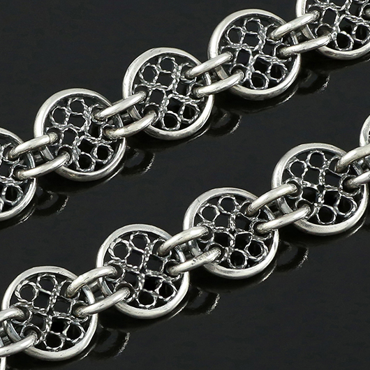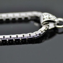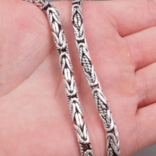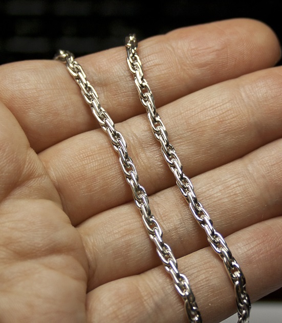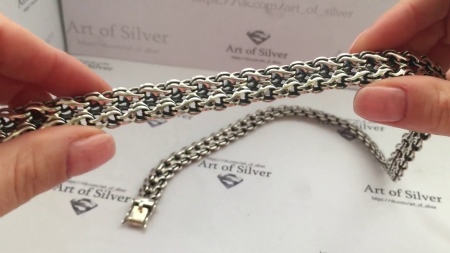 Machine way of interlacing links is relatively young.. Everything is simple, the method is fully automated. Silver is melted, then stretched, and the wire is obtained, from which the links are subsequently made. The next stage is the machine connection of links in a chain. This type of work is used for chains of classic style, strong and durable.