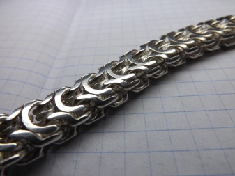 In addition to the manual and machine method, there is also a stamped. This is the fastest and relatively inexpensive way to make even large products seem lighter in weight. Pre-prepared links do not hold together, but thread one into the other. Such technology is not appreciated very highly, products are constantly being torn, twisted and deformed. Chains made in a stamped way should not be worn at night, pulled and compressed.