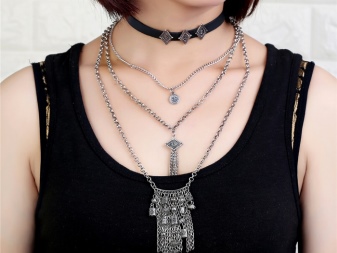 Clothes under which you will wear a chain is another important factor. Very short chains can be worn with any clothes, as long as she does not have a high collar. Medium-length jewelery is also suitable for everything, they are able to perfectly emphasize the chest, but should not be hidden in the neckline. Long chains look amazing in closed attire, especially if it is a sophisticated evening dress.