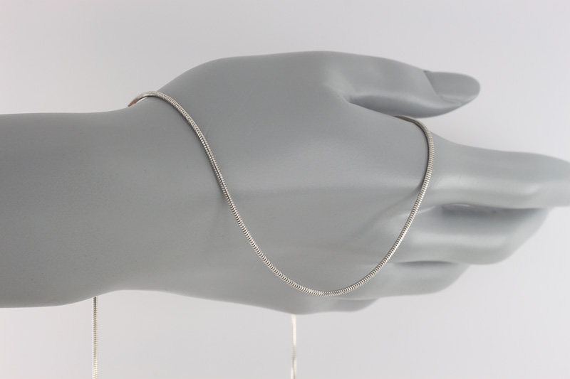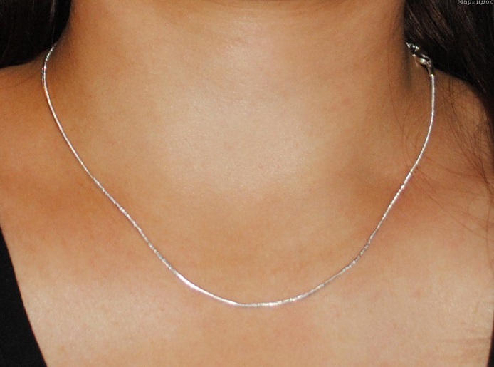 "Snake" - a very thin chain, it is fragile and needs careful wearing. "Snake" is also called the textile type of chain, because it looks like a small thin string. For products of this type you should not pick up additional decor, all their advantage is fragility and freshness.