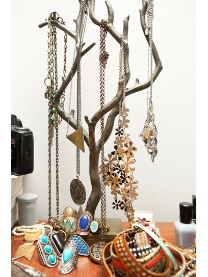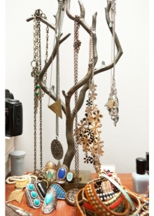 Some girls like to keep large accessories in sight. Thus, costume jewelry performs the role of decor in the interior. A variety of chains and beads on the original stand will look great on the dressing table or on the shelf.