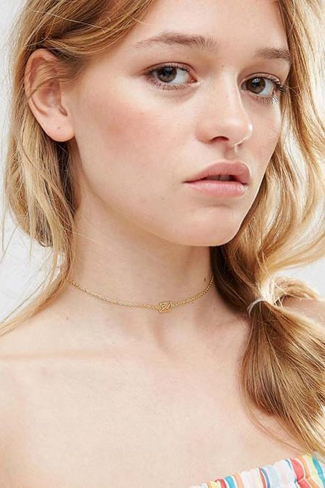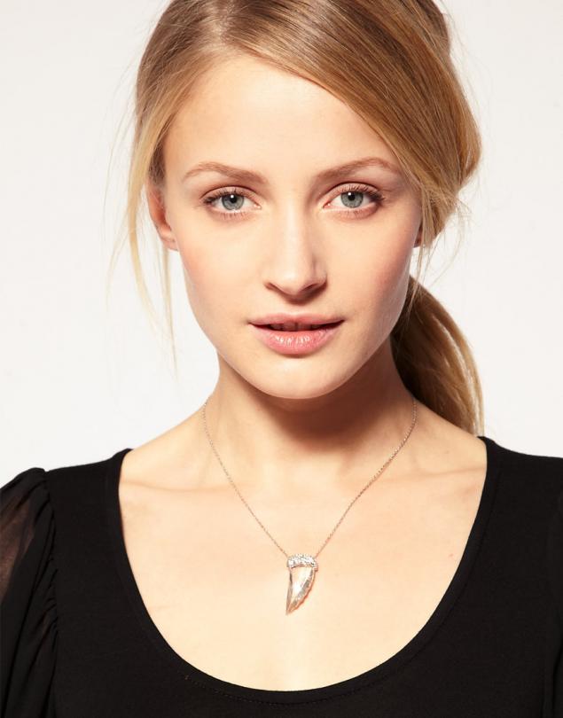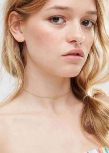 - Recently, a very popular model is considered a small accessory with a pebble under the neck. Usually this is a very elegant and small transparent diamond, which is fixed and extremely effective falls into the hole between the clavicle of its owner, thereby emphasizing its beauty and making a seductive neck. Although there may be other versions, for example, pearls or ruby.