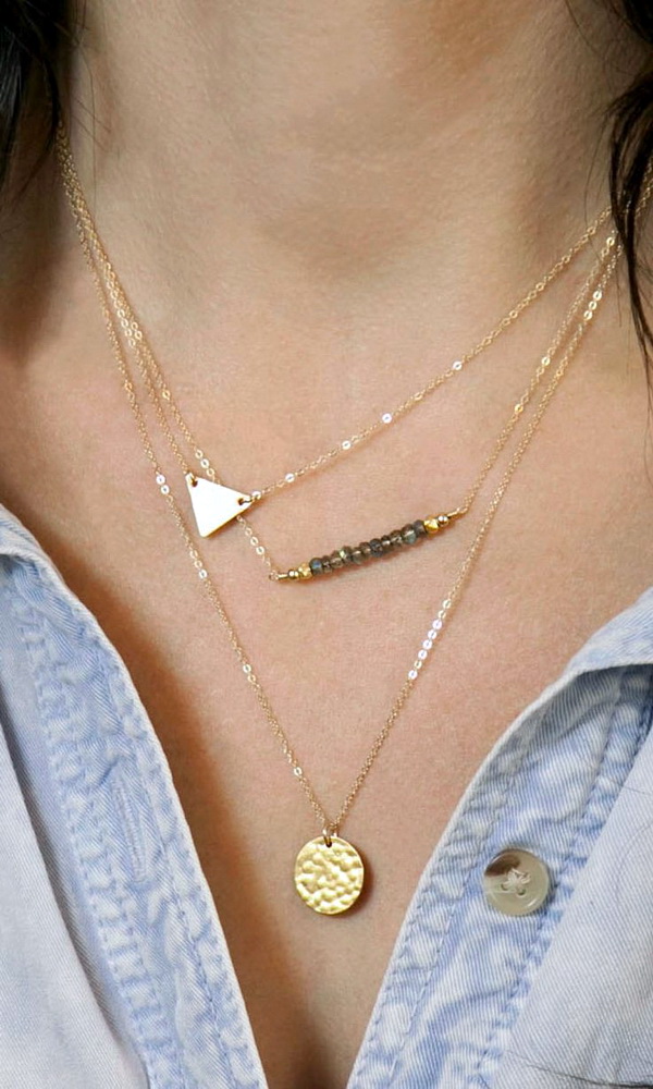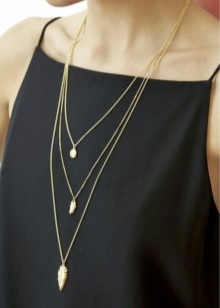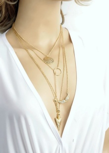 It should be borne in mind that the bottom edge of the chain should not be covered with clothes, you need to pick up a dress or blouse with a cut corresponding to the length of the decoration, or take into account when buying, with what wardrobe you plan to combine it.