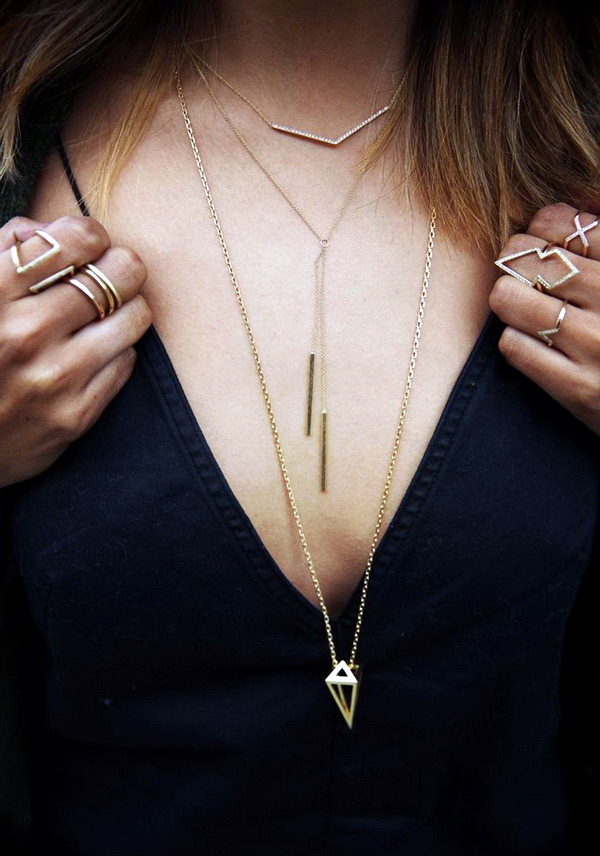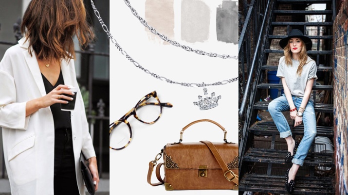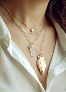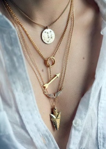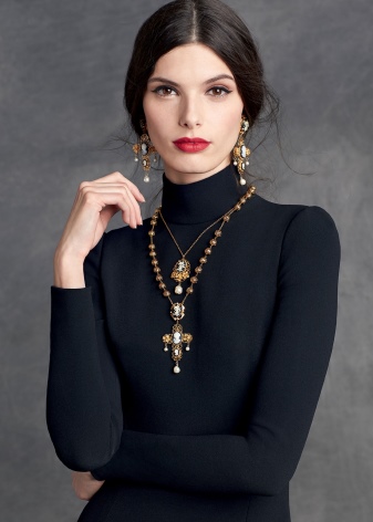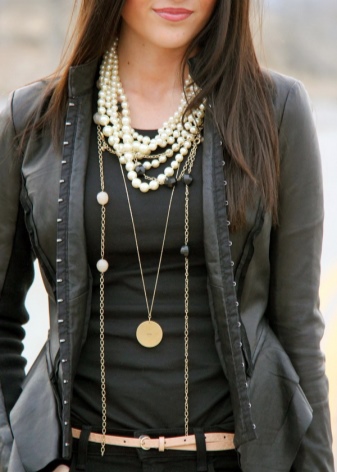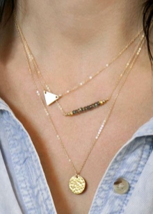 A ready-made set of pendants and earrings, a bracelet and a chain is the simplest, but completely optional option. You can match each other's decorations that are not bought in pairs, combine several types of chains with different pendants in one image, the main thing is to combine them correctly, taking into account the length, color, texture, seeking harmony. Multi-layered and multi-row jewelry is now in trend.