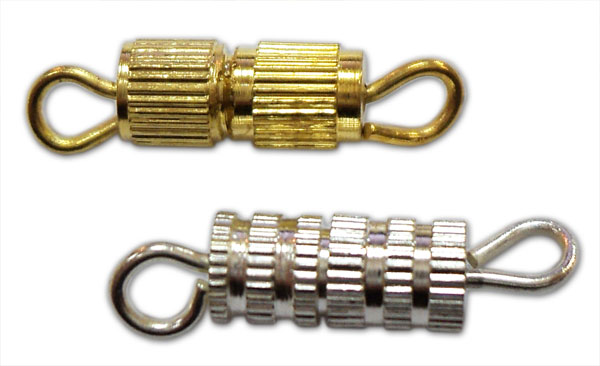 Very reliable lock, especially if it is equipped with additional fastening loops. It is mounted on heavy jewelery weighing from 20 g. It consists of two parts: a box with a hole and an element entering it, which is fixed inside.