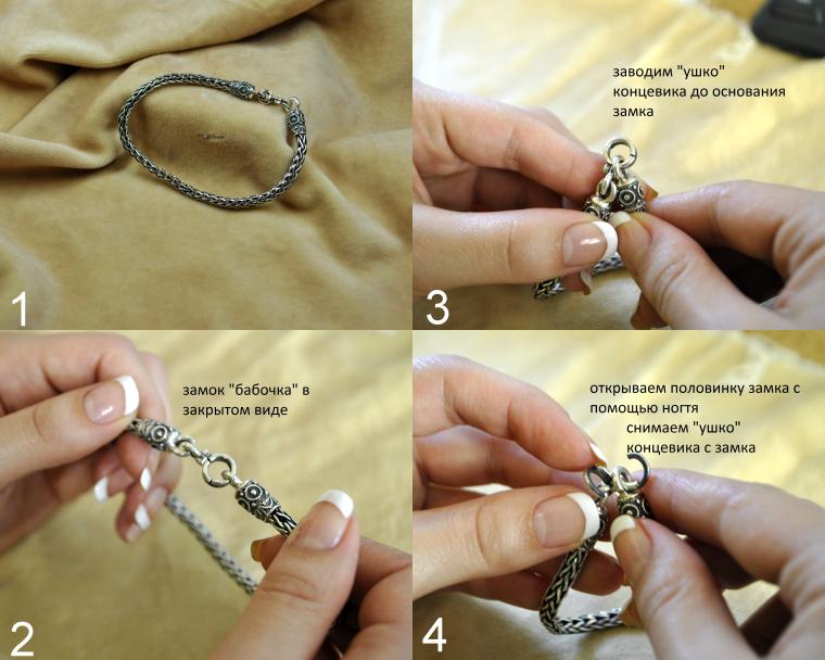 However, the product with a carabiner can be easily put on without the help of outsiders. Lever clasp easy to pick up and hold with a fingernail. In addition, it is easy to fix.
