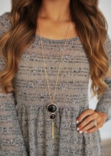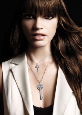 With the help of well-chosen length of the product, you can beautifully beat the advantages and disadvantages of the figure. For example, a short chain focuses attention on a beautiful neckline, a long one will draw attention to a luxurious neckline.