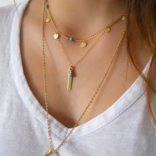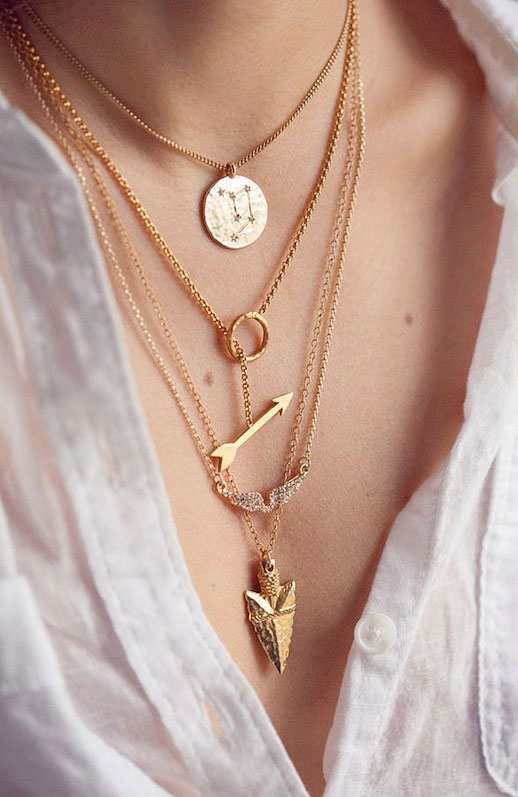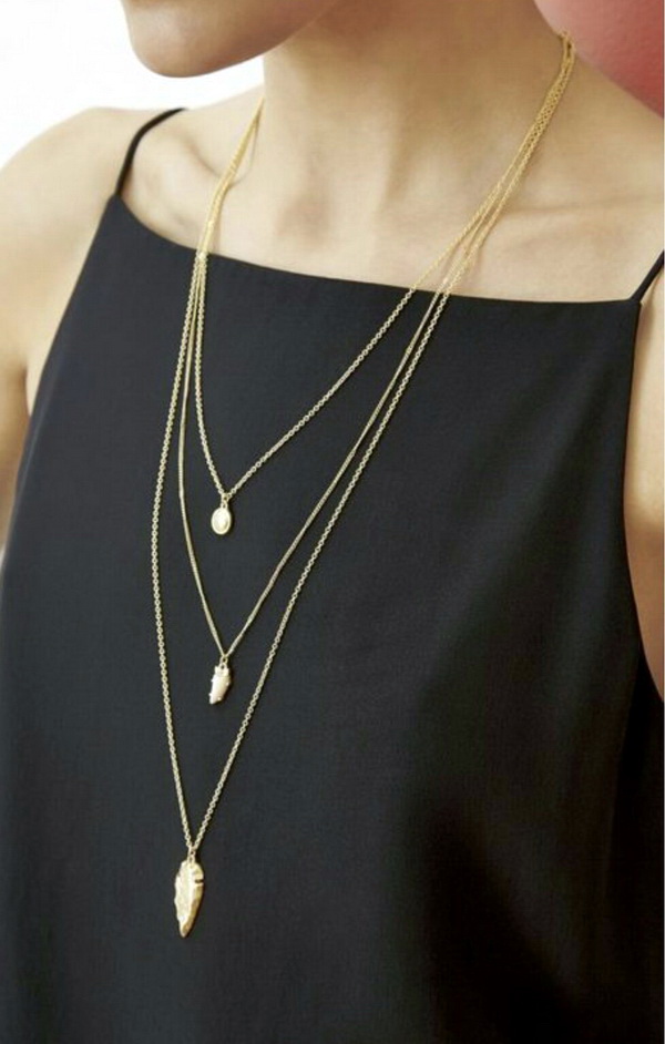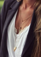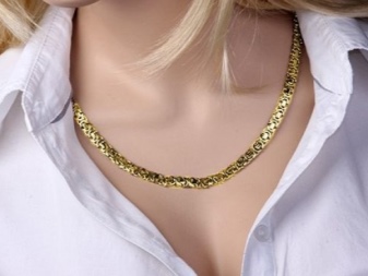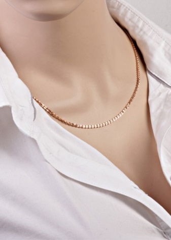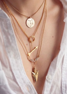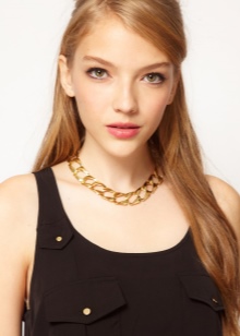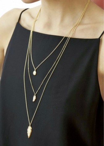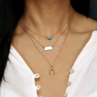 Gold or silver chains of medium length with a laconic pendant or without it are perfect for every day. Weaving should not be too convoluted, if the ornament is combined with a simple T-shirt or top. Fancy shapes accessories are best left for the evening out.