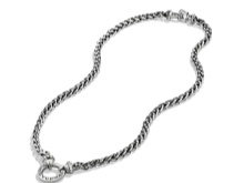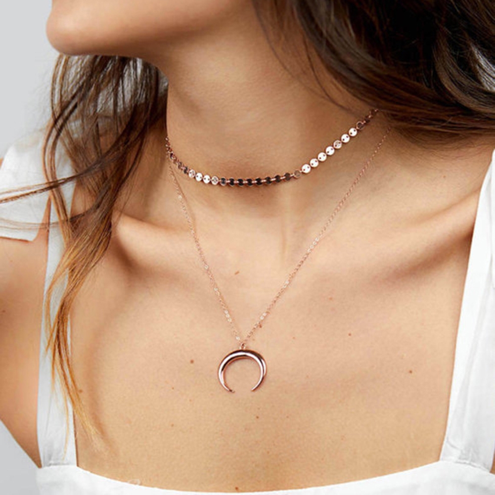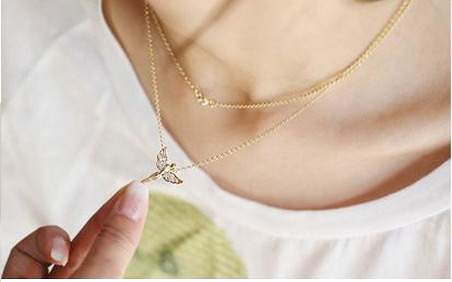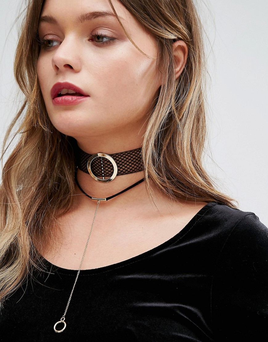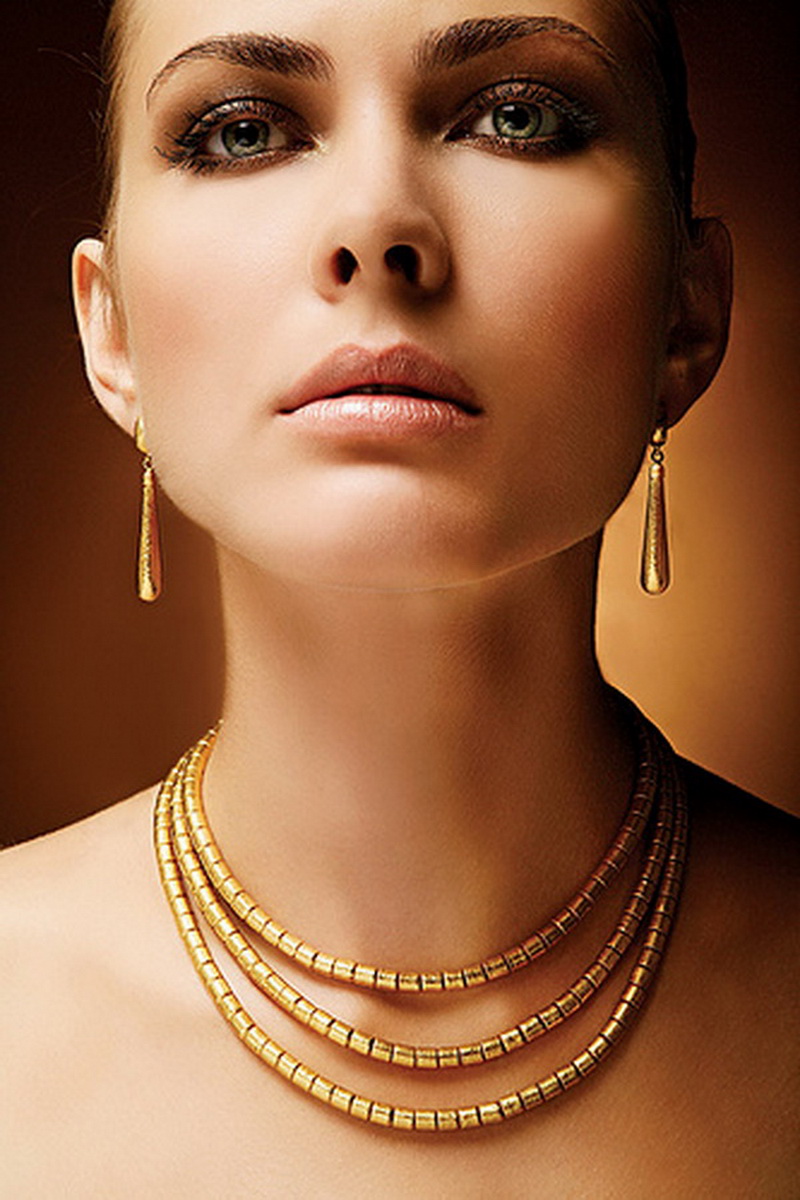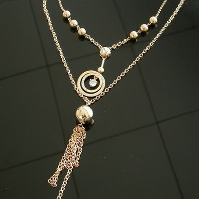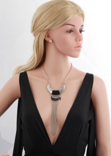 Long chains with complex weaving are well suited to beautiful, low-cut dresses.