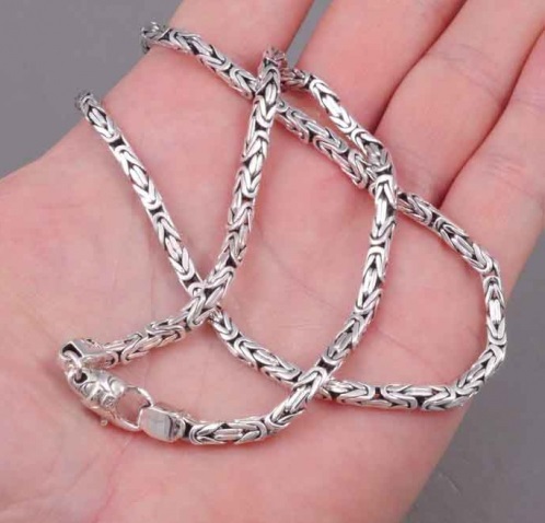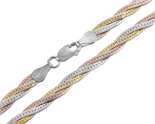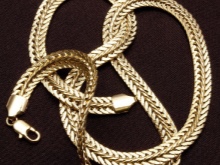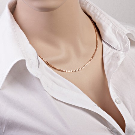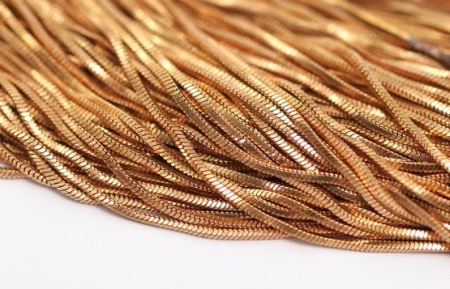 Small, well-ground links are tightly located next to each other and slightly twisted. Outwardly, such a chain looks almost monolithic and very much resembles snake skin. It is this similarity that gave the name of this kind of weaving. Due to outward unusualness, such a decoration is worn by itself, without pendants and pendants.