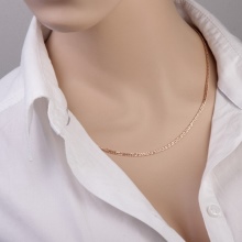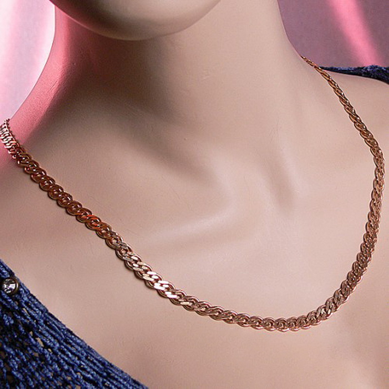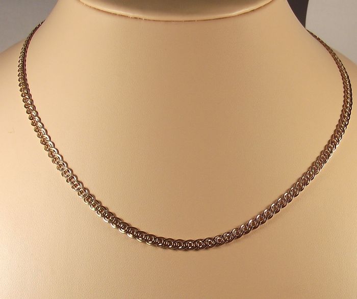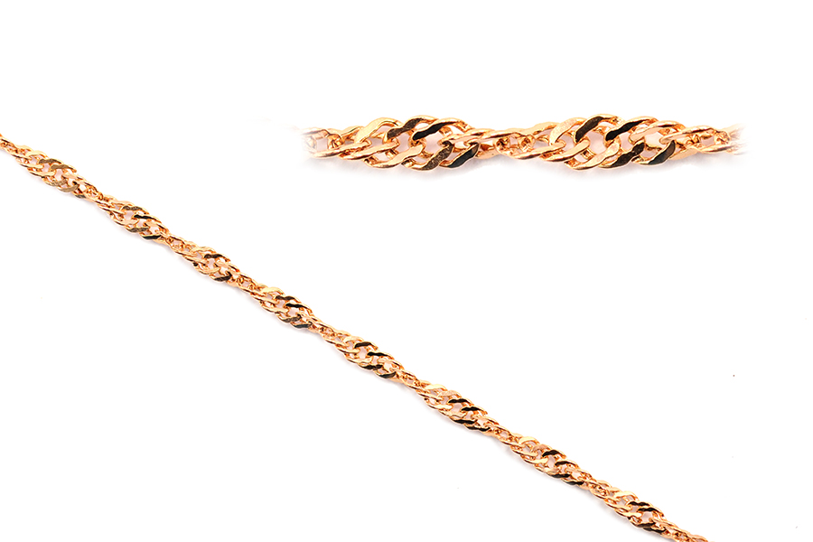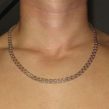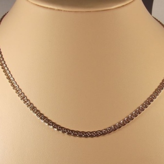 It is considered a variety of the first type, although it looks quite significantly different from it. Twisted links visually remind incomplete eights. They lie in the same plane, and the chain seems almost flat, and grinding further enhances this effect. This type of weaving is distinguished by its special refinement and elegance. The chain does not twist and does not cling to the collar of a shirt or blouse. Chains with such weaving are worn by men and women.
