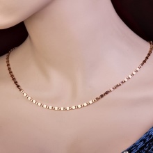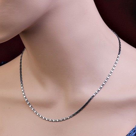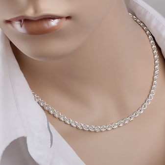 More sophisticated models of silver have a neutral white color. The black chain looks very unusual and original. Some models are made in several colors at once, for example, a black-and-white or white-yellow chain. Costume jewelery and handmade decorations are presented in a wider color range.