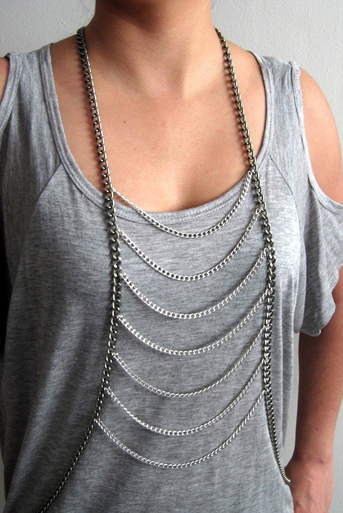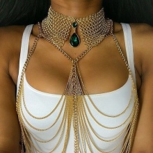 Chains decorate not only the neck, but also the arms, legs, head and body. They can be used on their own or supplemented with a suspension.