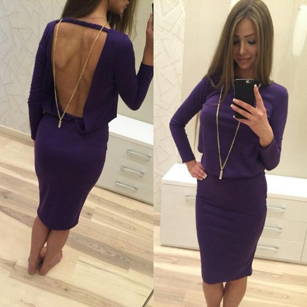 One of the most beautiful and feminine decorations for an evening dress with an open back is a thin long chain, falling to the back. It can be decorated with a concise pendant. There may be several chains at once. Then they are intertwined with each other and cover the back, like an openwork sparkling mesh.
