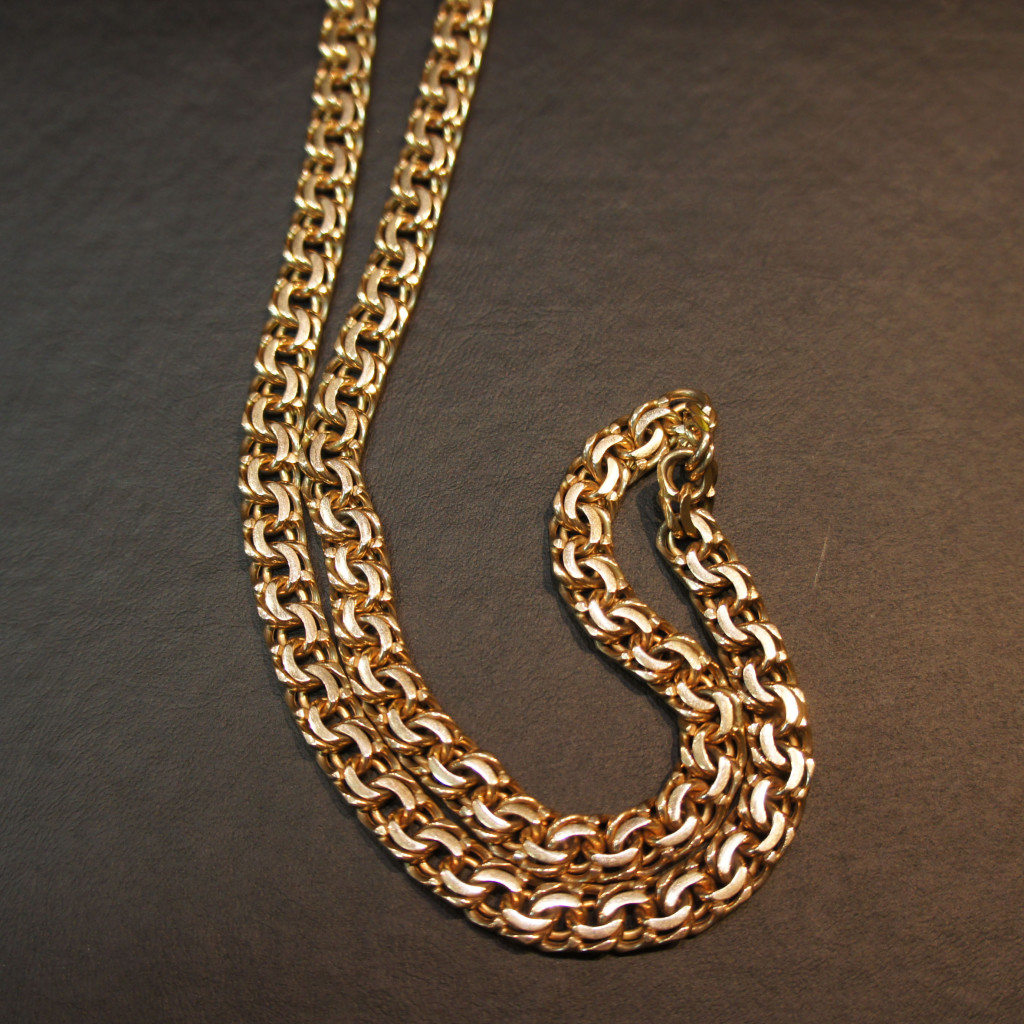 This weave consists of flat links. It looks very impressive and catchy. But such chains often cling to hair and clothing and get tangled. Basically, this type of weaving is used to create women's jewelry.