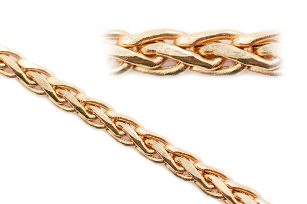 Very beautiful twisted weaving, which is often used to create chains for pendants. The links are twisted in a spiral, so their faces burn and shimmer with each hit of a sunbeam. Simple enough and strong connection.