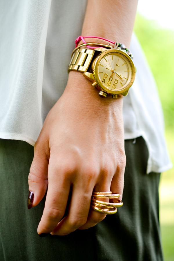 If you like voluminous watches, then large and heavy watches will help you to decorate a bright and spectacular image. They will be the highlight of a charming bow.