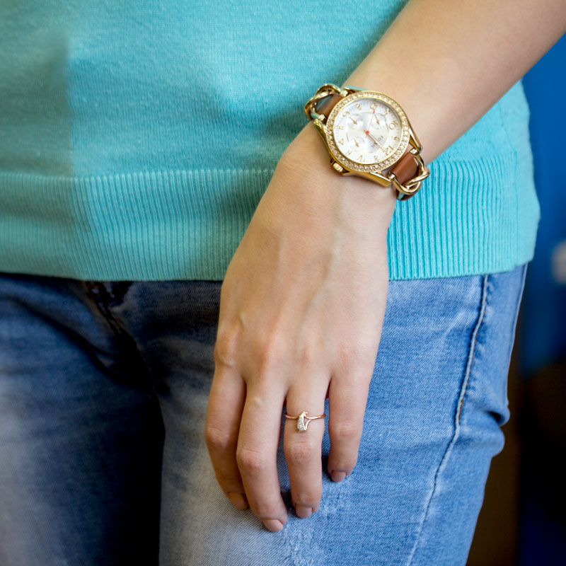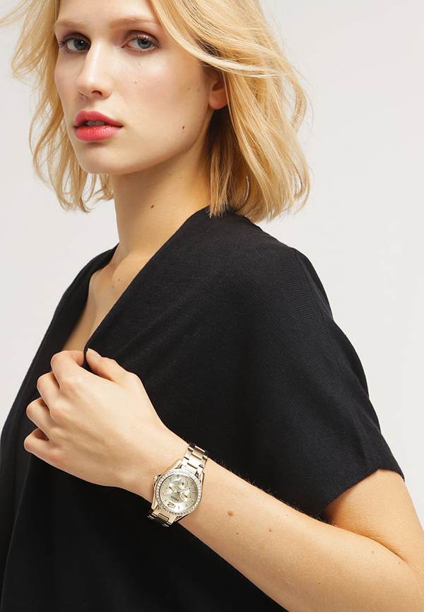 The location of these small shining pebbles, both on the watch case and on the dial, is clearly seen in such collections as Virginia, Olive, Trend.