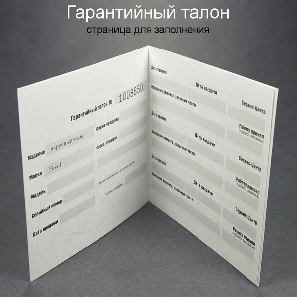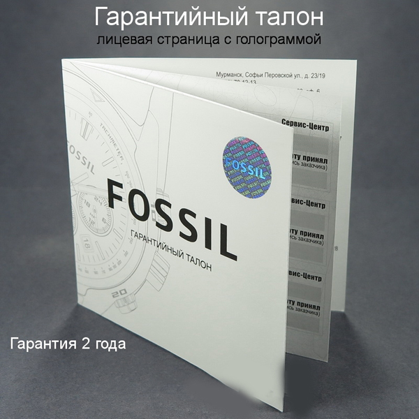 In the package, along with the watch, there is always a warranty card, in case of replacement or repair of not only this accessory, but also the battery. For most buyers, the presence of a coupon with a guarantee means that the manufacturer is fully responsible for the quality of their products and is not afraid to assume obligations. This fact greatly increases the degree of confidence in the company Fossil.