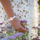 - White and gold-plated watches on wide and thin leather straps are most popular among wealthy ladies who want to look luxurious without any frills and vulgarity.