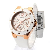 - Well, the watch, which can be found in online stores by article number 10614l2, is rightly considered the most popular. They have a silicone white strap, white dial and are made of durable, stainless steel. Small pink inserts give the whole design a delicate, elegant look. Due to the fact that they can be combined with any clothing, it is very difficult to find copies in stock because ladies buy them at one time.