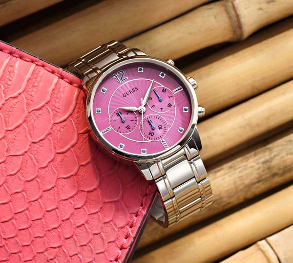 Here, the creators of the company Guess tried their best. They did not dwell on traditional white, black, and brown designs. In the range you can see pink, blue watches, as well as unusual leopard work.