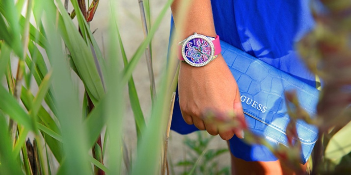 - The design of various floral, ethnic, geometric and animalistic prints has been popular for many years now in the fashion world. Often it can be seen on clothing, but Guess watches are no exception. In the latest collection can be traced not only the classic white and black, but also bright "predatory" options.