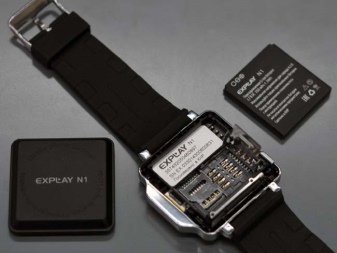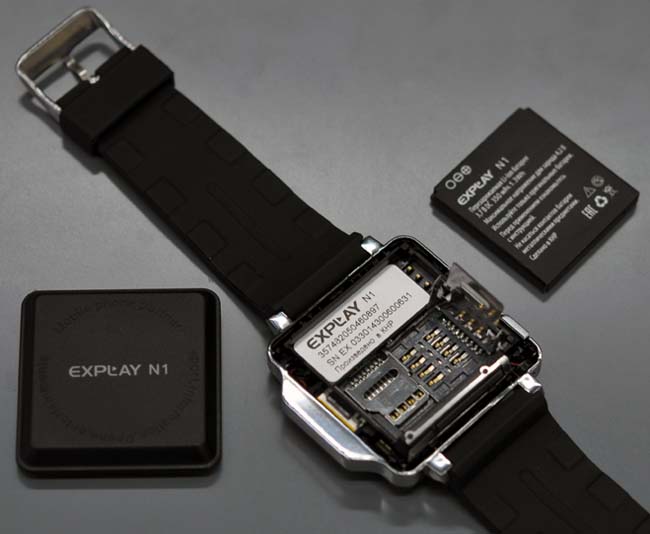 The Explay N1 model has a touch screen, it has the ability to use a SIM card and then the watch functions as a phone - they can make calls, write messages, watch media files, use the calendar, reminders, alarm, listen to music. Calls can be made through the speakerphone or headphones, which can be connected via microUSB.