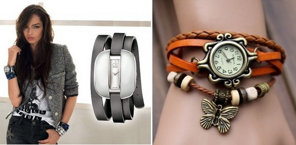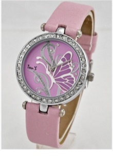 Watches, like other girls' accessories, are decorated with all sorts of ways using different materials. First of all, the design of the watch itself can be an element of decor. An unusual form, for example, in the form of an apple, cherry, butterfly, flower or heart, will surely attract the attention of others to an unusual accessory.
