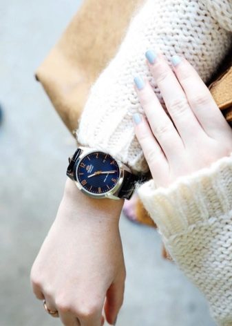 - on every day - with a monochromatic, mother-of-pearl or hand-painted dial, with crystals instead of numbers, beige, purple, blue, pink, orange, on a thin or wide bracelet and many other stylish and fashionable models;