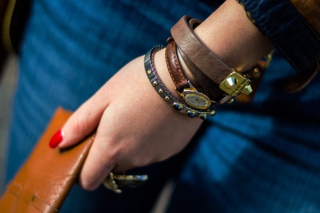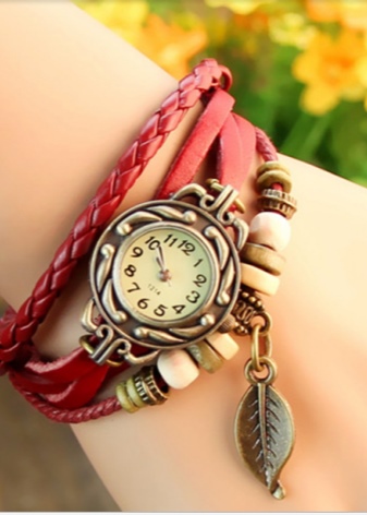Particularly impressive on the wrist look natural belts, decorated with embossed patterns and metal parts.