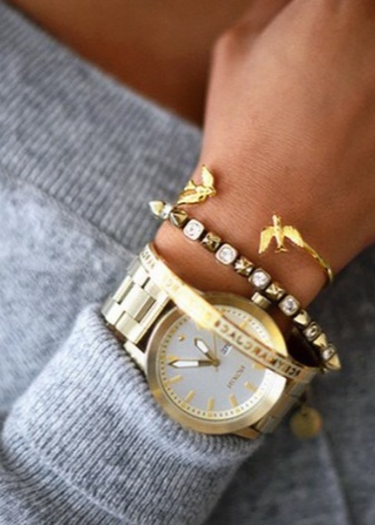 The trend of recent seasons is a double bracelet. It can consist of two thick or narrower straps. Accessories with similar elements are distinguished by their elegance and sophistication. On the ladies' wrist, they look very impressive, emphasizing the elegance and natural charm of its owner.