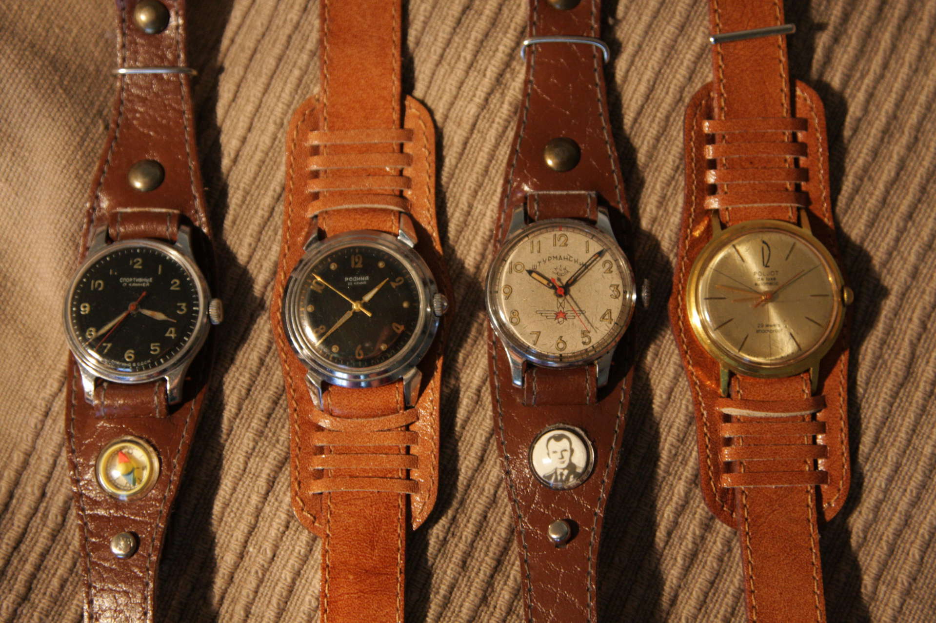 One of the most popular materials is leather.. Today, on the shelves of shops you can meet a variety of watch with bracelets made of genuine or artificial leather.