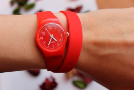 - Rubber and silicone belts today can be purchased in absolutely any color. But especially bright and saturated on the female wrist look red, blue, salad, orange, coral, white, black, blue, purple, yellow and pink copies.