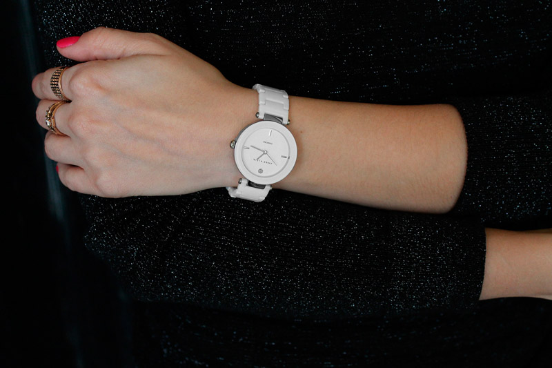 This bracelet watch by Anne Klein is distinguished by its “expensive” and spectacular appearance. On their background, dials with metallized inserts look great.