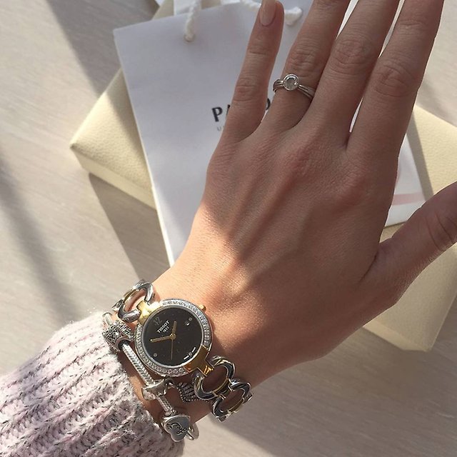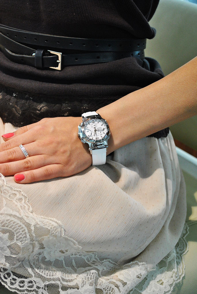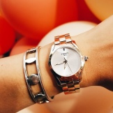 The line of women's accessories manufacturers especially try to diversify the original designs. Thus, models with a gold case and a strap made of genuine leather or fabric and samples in which white and yellow gold alternated in the case and bracelet were added to the collection. Demand and accessories with diamonds, located both on the perimeter of the dial and the entire surface of the case and strap.