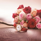 Produced and completely original copies, for example, the model "Precious Flower". The dial is made of mother of pearl and surrounded by elongated spheres, petals, giving the case a resemblance to a rose bud. A striking feature is the ability of the petals to fold, just like a live flower. The mechanism is held on the hand with a satin ribbon, and the case is decorated with a scattering of sapphires, rubies and diamonds.