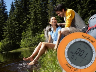 - Tourist. Electronic clocks, which are used in trips, trips to nature, mountain climbing. The built-in mechanism is distinguished by its reliability, the robust case prevents damage to the product in the absence of the benefits of civilization. There are models not only with a compass, but also with a thermometer or with a navigator. Such multi-functional models will not get lost in unfamiliar terrain.