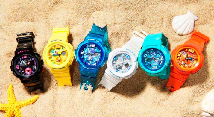 Brands offer both adults and children's watches. Products will appeal to young swimmers: accessories are firmly held on the wrist, are not felt during training, are deprived of sharp corners and are absolutely safe for the child. In the event of a breakdown, they do not form splitting fragments and are not capable of injuring their little owner. Watches for children are made of high-quality plastic, the dial is protected by mineral or acrylic glass.