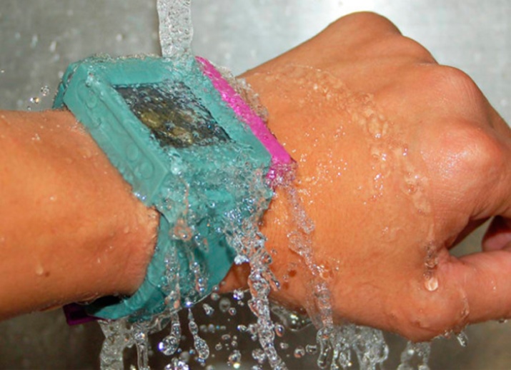 Waterproof silicone watch is a practical option for swimming in a river or pool. Such models weigh little (about 10 g), easily attached to the hand. They are made in motley shades; there are both monophonic and variegated products. They are decorated with crystals, colored inserts. There are also watches in which a silicone strap is combined with a metal dial.